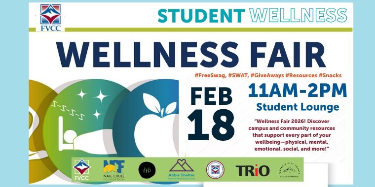 Fitness Center, Wachholz College CenterEvery Tuesday from 11-12, meeting in the fitness center. Join us as we program for FVCC's campus wellness!